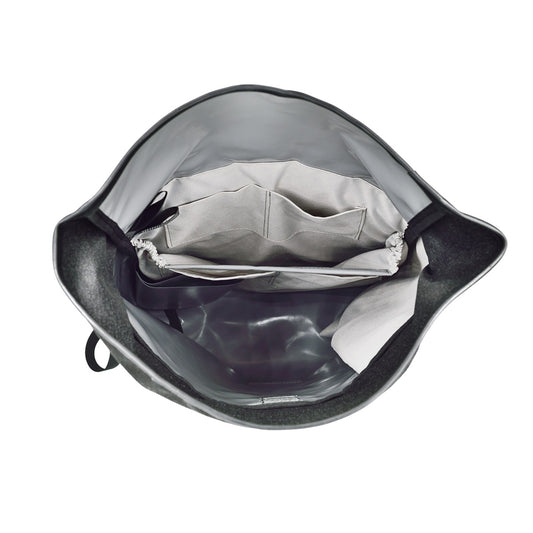 Die ideale Rucksack-Fahrradtasche für den täglichen Gebrauch. Ausgestattet mit Laptopfach und vier kleinen Innentaschen für deine persönlichen Gegenstände, bist du bestens gerüstet, um dich regensicher in den Alltag zu stürzen.
