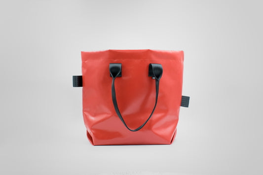 Mit 2 Seitenschlaufen kannst du den Shopper an dein Fahrrad hängen. Karabiner können dazu bestellt werden.