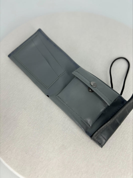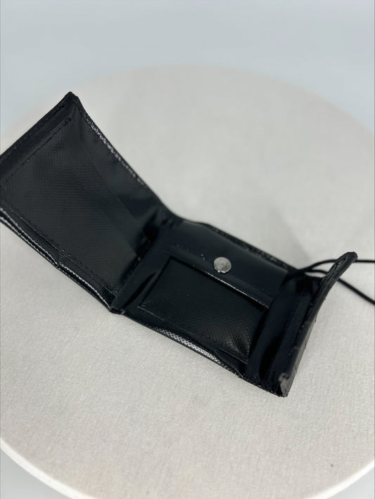 Unser Safe für Groß- und Kleingeld. Aus robusten LKW- Plane, Schlauch und innen mit Stoff harmonisiert. Ausreichend Platz für 6 Karten, Geldscheine und Hartgeld. Extra Münzfach mit Druckknopf verschlossen. Geschlossen wird das Portemonnaie mit einem Spanngummi. Nach ein paar Wochen ist das Portemonnaie "eingearbeitet" und der Spanngummi kann abgemacht werden. Extra kein Klettverschluss, damit dein Pulli verschont bleibt.